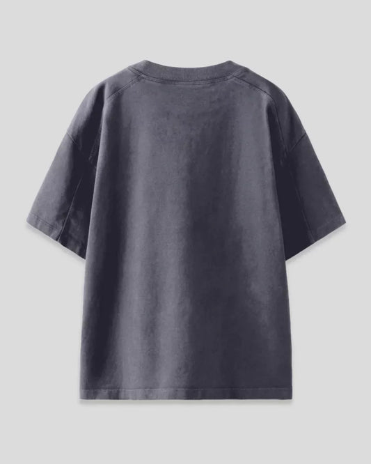 Denim Blue Plain V-Neck Oversize T-Shirt