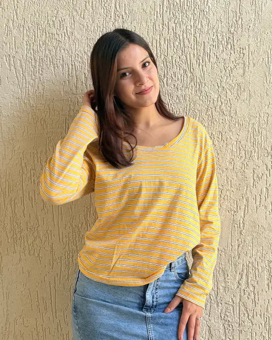 28% DiscountStripe Patten Cotton Full Sleeve T-shirt